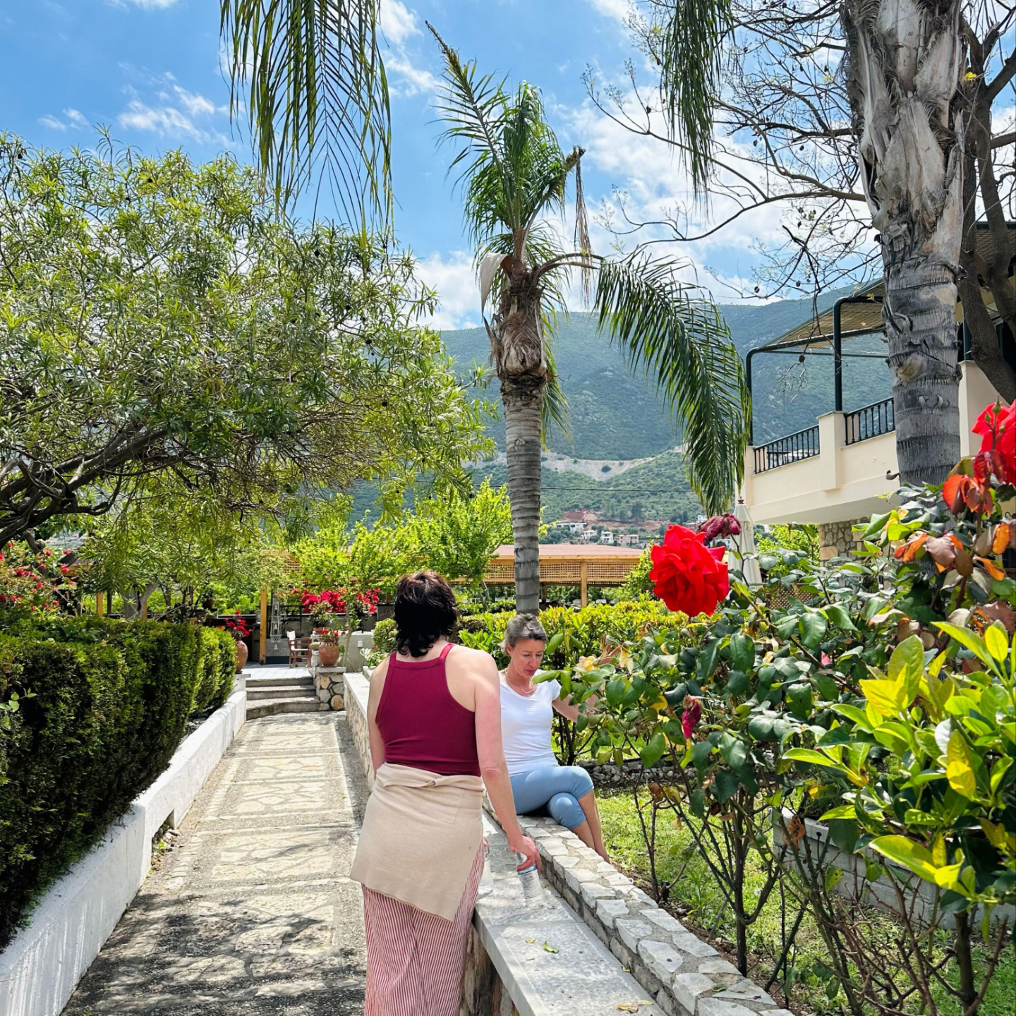 Our retreat venue includes our very own yoga shala and is a local family run business. We will stay in big, bright and lovely studios, surrounded by the lushest of green gardens. It's just a stone’s throw away from the sea and has breathtaking mountain views.