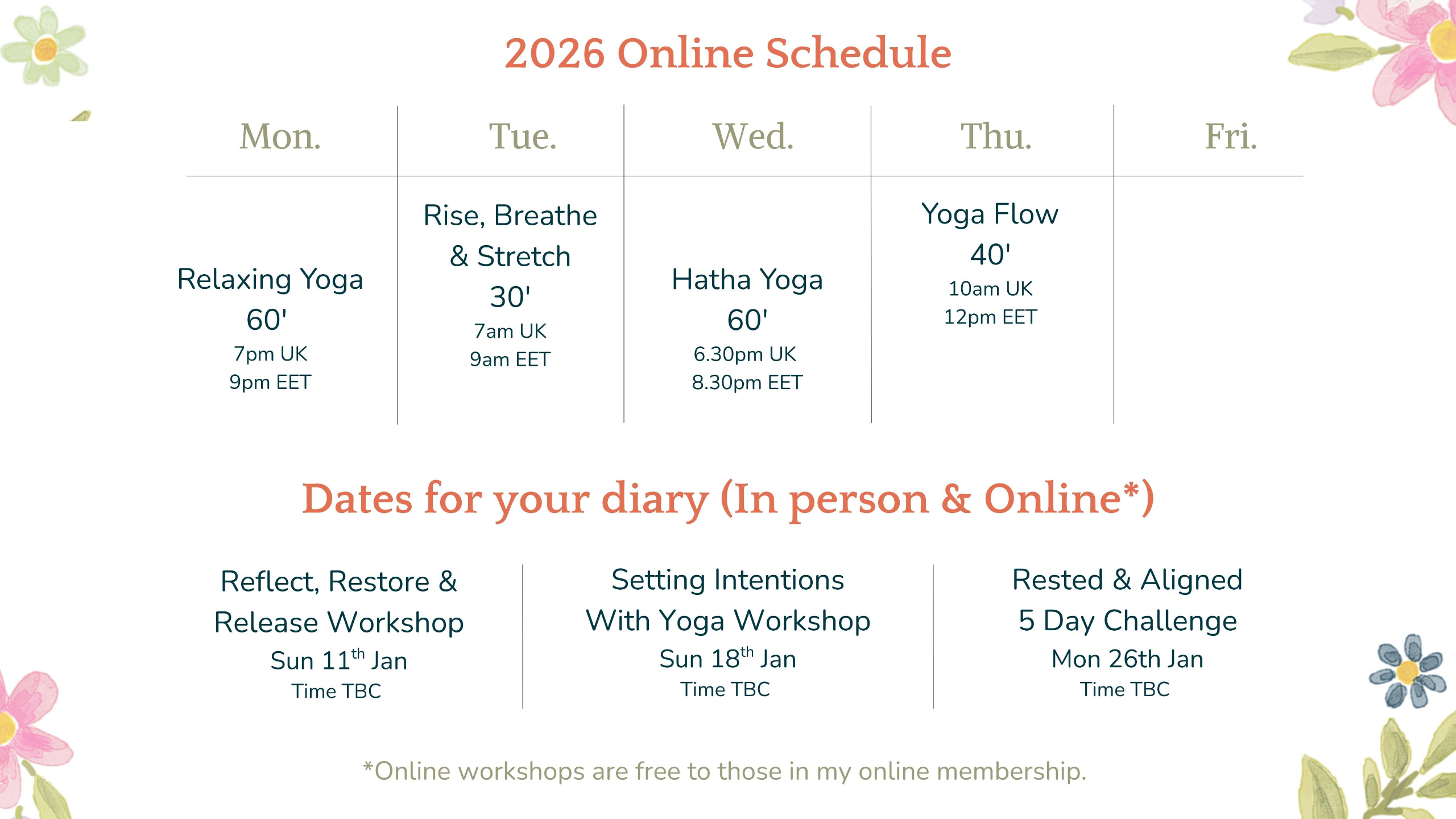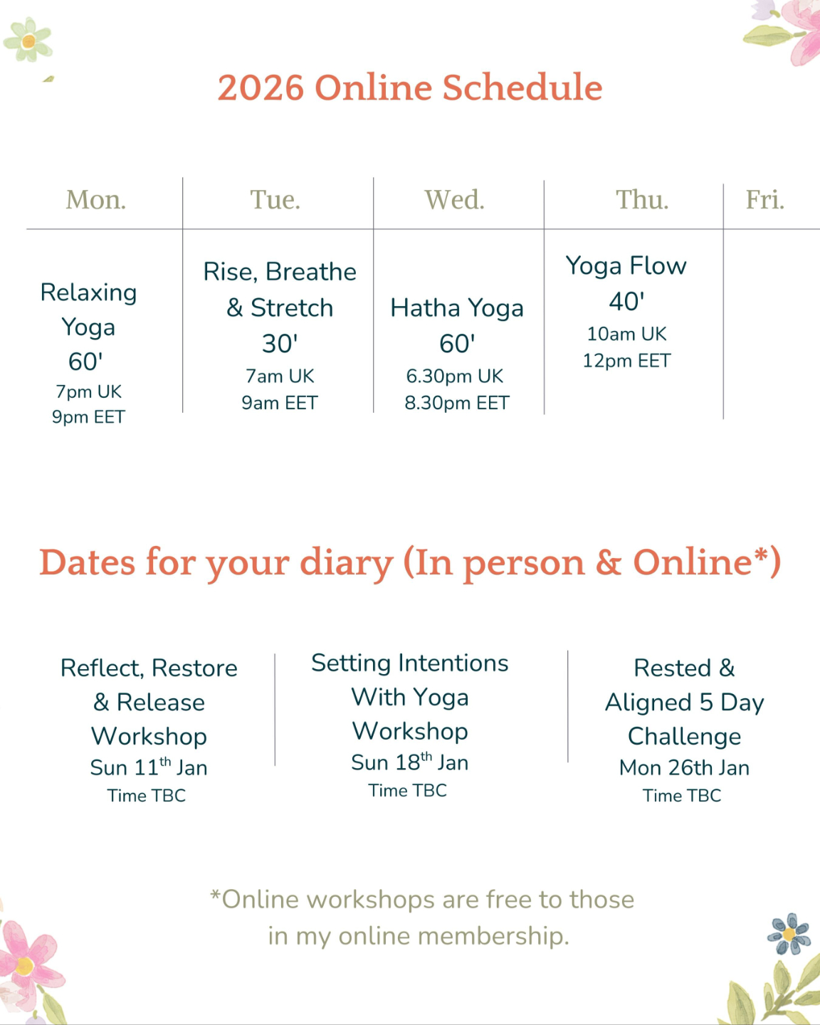 ** Please note I will check each class 2 hours before start time. If I have no bookings for that session yet, I will close it. So make sure to book in advance if you plan to join. If you are showing up - I'll always be there!