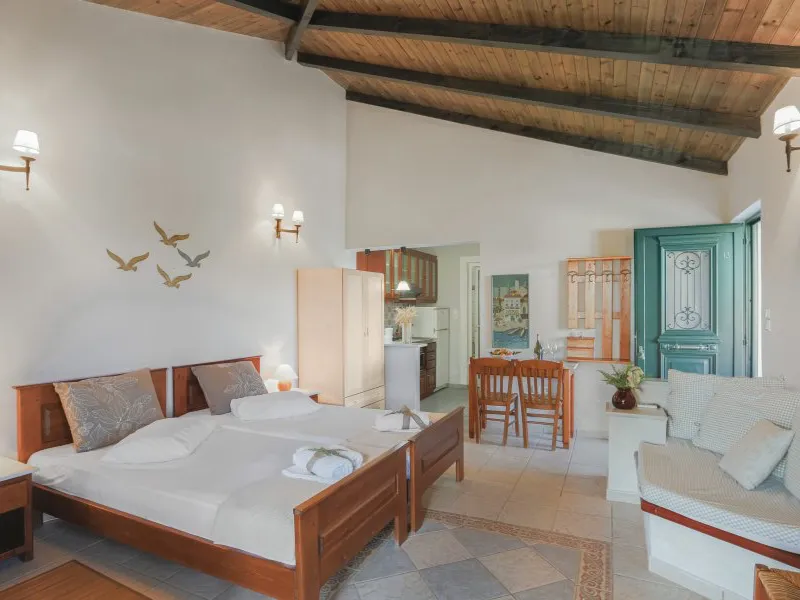 The location is absolutely stunning and offers the perfect, soothing setting for relaxation. The accommodation was thoughtfully designed, with each room featuring a balcony or patio and a kitchenette for making drinks and snacks. Everything was spotless and cleaned daily. The breakfast was consistently satisfying, with a wide variety of options that changed day by day.